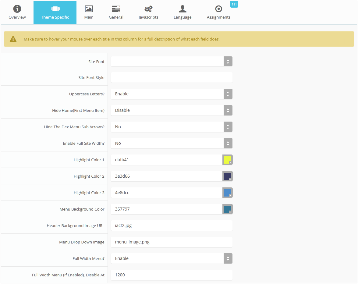 Every template built on Vertex also comes with its own unique template specific options applicable to that particular template such as highlight colors, social icons, and much more. These features are in addition to the standard functions of Vertex, and are still controlled through the very user friendly interface of Vertex. This page will document the features specific to this template.